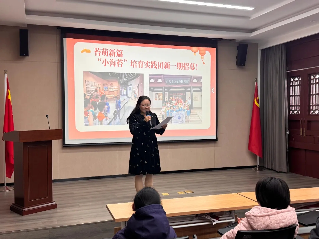 “小海苔”培育实践团自2023年成立以来,始终是广大青少年传承红色血脉、厚植爱国情怀的重要平台。活动现场,精彩的短视频再现了“小海苔”们的讲解风采,引来现场青少年的阵阵掌声。工作人员同步发放招募报名表,鼓励有责任感、有爱心的青少年加入团队。入选成员将系统参与文物知识讲解、展厅导览实践等特色课程,解锁多项实用技能,助力历史文化薪火相传。