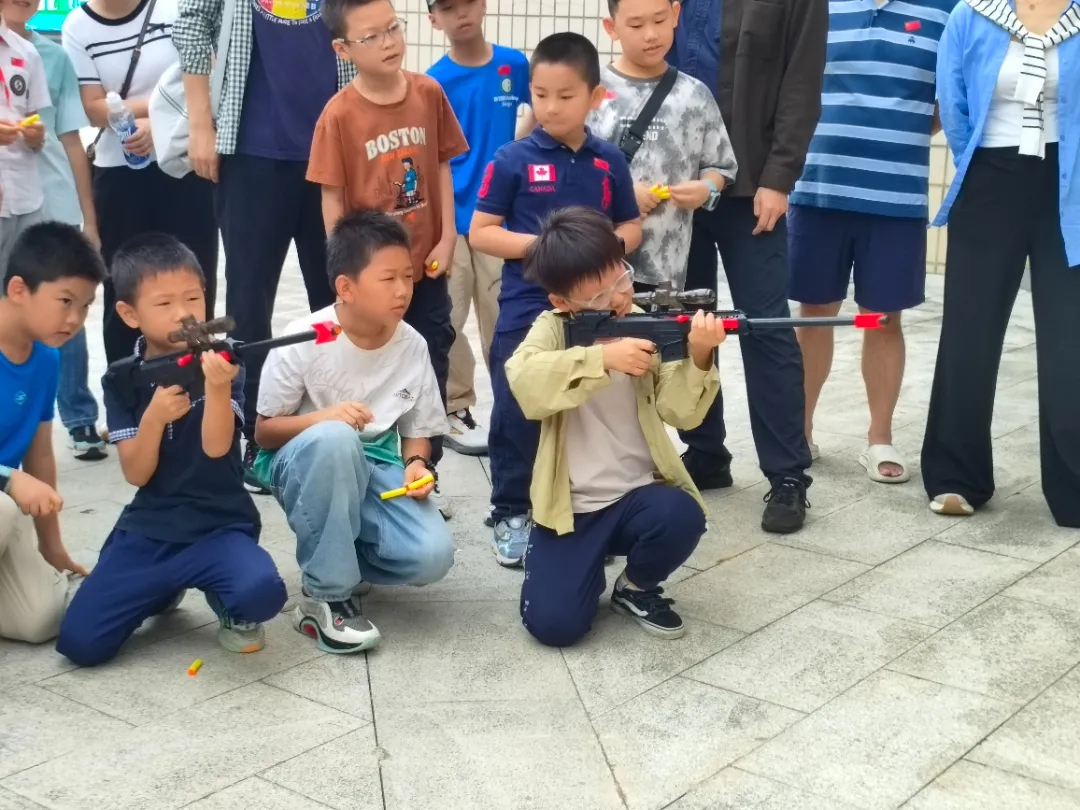活动最后,开启了一场热闹的“军事游戏大比拼”。现场设置“手榴弹投掷”“模拟射击”两大趣味项目,在专业人员的指导下,家长与孩子可共同体验军事技能:手握模拟手榴弹,学习标准投掷姿势;对准模拟靶位,感受射击的专注与精准。孩子在游戏中不仅学习到了国防知识,更重要的是培养了勇敢坚毅的品质,实现“寓教于乐”的国防教育目标。