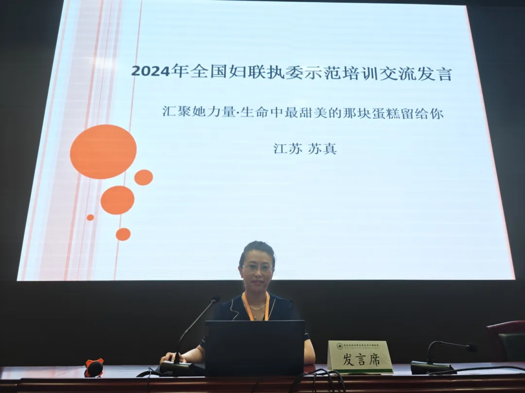 南京市妇联执委、南京条约史料陈列馆(南京静海寺纪念馆)馆长、民盟南京市委委员、妇女工作委员会主任苏真作为南京市妇联选派的唯一执委代表,赴北京参训,并代表江苏做大会交流发言。苏真馆长以《汇聚她力量·生命中最甜美的那块蛋糕留给你》为题,向大会汇报了南京市妇联贯彻落实全国妇联、省妇联工作要求,创建妇联代表履职“五薇”行动品牌的具体举措。并与来自全国各地、各个行业领域的执委分享自己如何将本职、民盟妇委会以及参政议政较好的融合起来开展妇联执委工作的履职经历和经验感悟。将我馆“静海紫荆”妇女微家为妇儿开展丰富多彩、形式多样的社教活动、送展送讲进校园、赓续红色血脉,创立 “小海苔”讲解员培育实践团,以及关爱困难群体、开展志愿者服务等情况向大会做了汇报。她将女性在家庭和职场中扮演的各种角色比喻为一个蛋糕,全情投入,倾情浇灌,合理的利用和分配时间,就能够品尝到她幸福、甜蜜与快乐的味道。同时也呼吁全体参训执委善用女性特有的韧劲、春风化雨的细腻和女性的包容和爱,滋润化解更多的矛盾,树立优良家风,更好的关爱儿童与青少年。