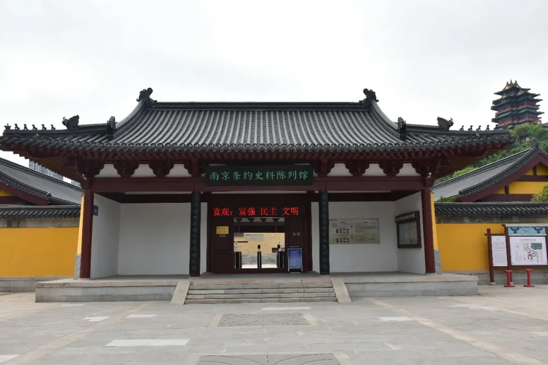 南京条约史料陈列馆(南京静海寺纪念馆)位于南京城北狮子山西南麓,是中宣部首批命名的国家级爱国主义教育示范基地、全国禁毒宣传教育基地、江苏省首批港澳青少年国情教育基地、江苏省志愿服务示范基地。古静海寺系明成祖朱棣褒奖郑和航海的功绩而敕建,铭记着中华文明开放包容和丝绸之路的开辟。清代闭关锁国,静海寺成为中国近代史上第一个不平等条约——中英《南京条约》议约地,见证了民族屈辱。